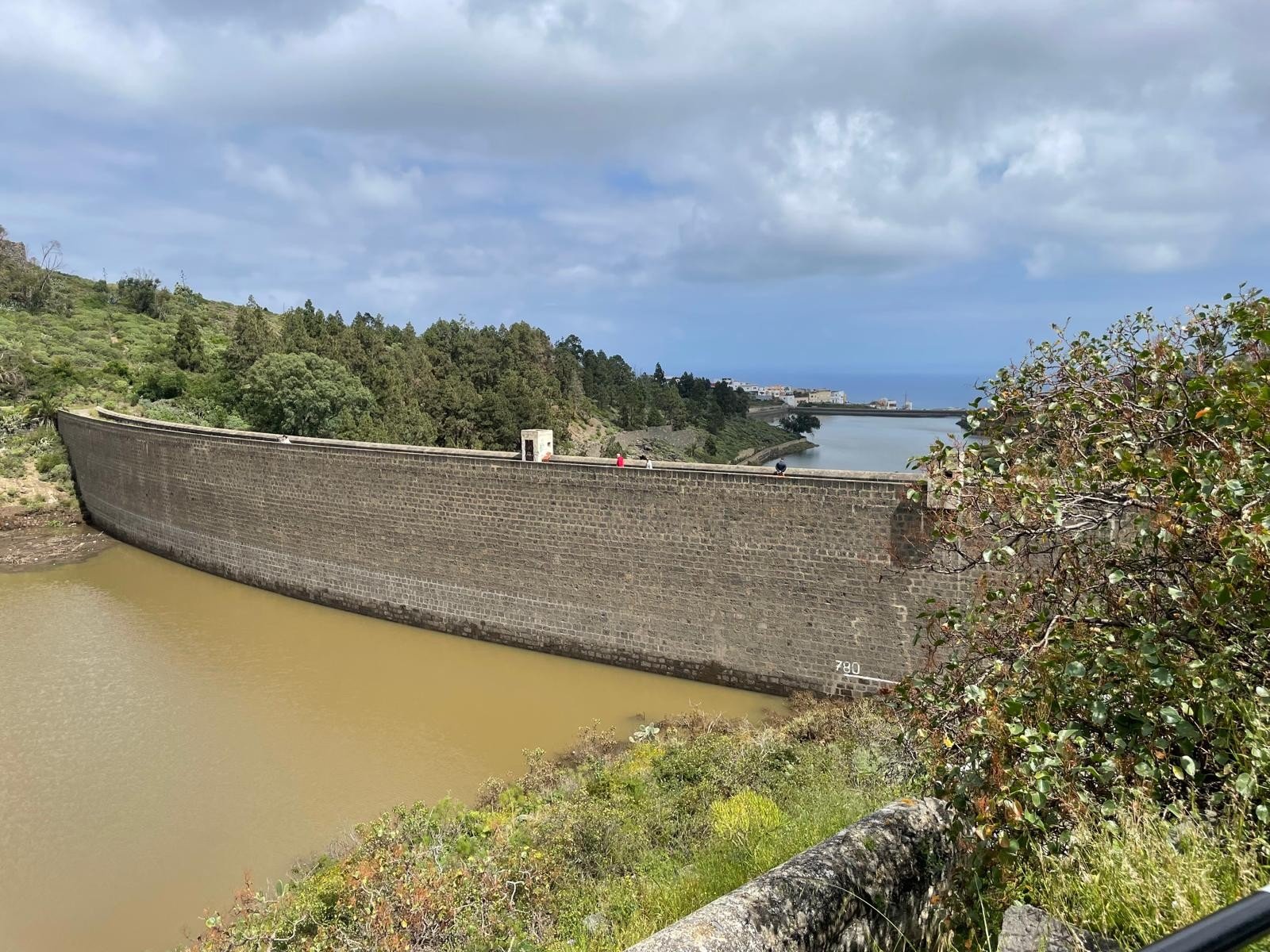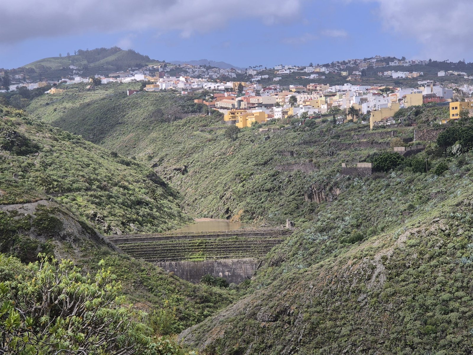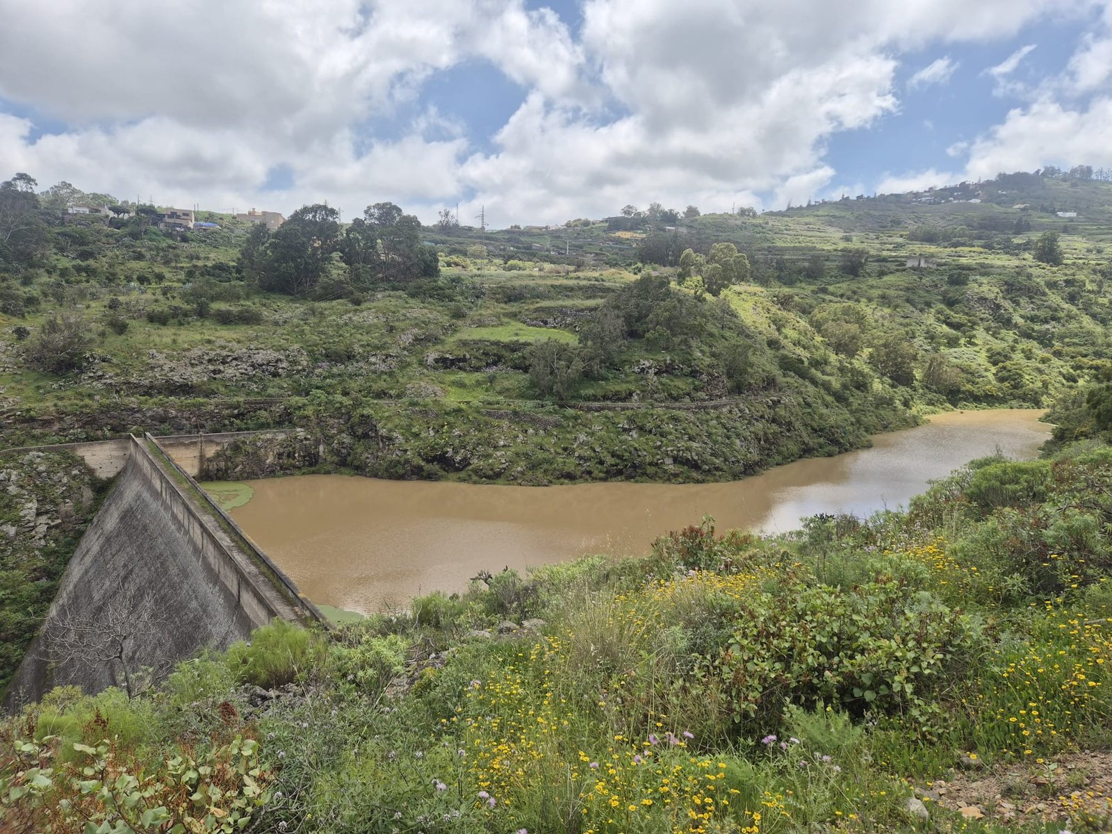 Después de pasar por el muro de la presa empezamos a subir para cruzar el Barrio de la Goleta y llegar a la GC-20(Carretera Arucas-Firgas). La cruzamos para empezar a bajar hacia el Barranco de Arucas. Una vez que llegamos al cauce subimos por éste (Es el tramo del camino que ofrece más dificultad por la vegetación y más si ha habido lluvias recientes por el barro). Unos 500 m antes de llegar al muro de la Presa de Hoya de Ponce o de Los Jiménez encontramos por la derecha en medio de unos eucaliptos el sendero que sube hasta un pozo. A partir de aquí continuamos por la pista de acceso a éste hasta llegar a un Parque recreativo. Lo cruzamos hasta el final y ya vemos desde lo alto la presa. Un sendero en buen estado baja hasta ella. Cruzamos la obra y empezamos a subir hasta llegar al Camino del Arco. Tomamos esta pista hacia la izquierda bajando. Encontramos la subida hacia Lomo Jurgón (Albergue y zona Recreativa) y continuamos bajando. Pasado un gran estanque redondo continuamos por la izquierda en el cruce, por Lugar las Vegas. Pasamos bajo la GC-20 y continuamos por la derecha por el cauce del Barranco de Arucas. Al llegar a la altura del aparcamiento donde iniciamos el camino nos salimos a la derecha.